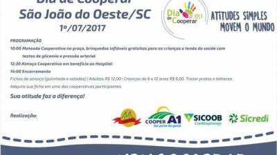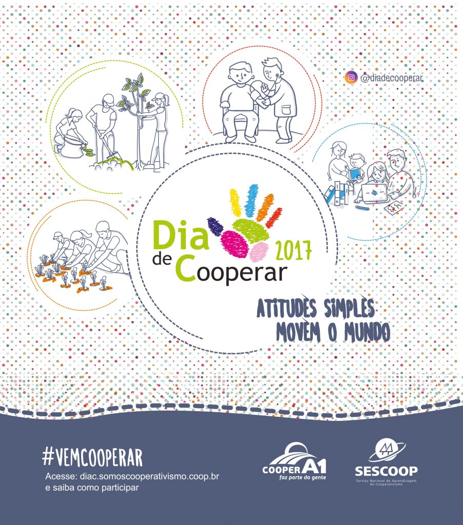 “Atitudes simples movem o mundo”. O slogan do Dia de Cooperar 2017, conhecido como “Dia C” motivou a Cooper A1 a programar ações e projetos sociais em comemoração ao Dia Internacional do Cooperativismo. A data é celebrada mundialmente neste sábado, dia 1º de julho. Com as ações, a cooperativa passa a integrar uma grande corrente nacional do bem, quando cooperativas de diferentes ramos, organizadas pelo Serviço Nacional de Aprendizagem do Cooperativismo (Sescoop) promovem milhares de ações voluntárias em benefícios das comunidades onde estão inseridas.
