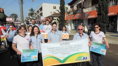 A Cooper A1 desfilou com seus colaboradores levando placas de todas as atividades econômicas e sociais desenvolvidas. Além disso, apresentou sua missão e os sete princípios universais e norteadores do cooperativismo.