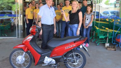 O cupom de Celita Baumann foi sorteado ainda no dia 24 de fevereiro. Além da moto, que reuniu os cupons das 18 unidades da cooperativa, no dia 23 do mesmo mês, foram sorteadas 20 máquinas de lavar roupas contemplando clientes e cooperados de todas as filias da Cooper A1. Próxima semana tem mais uma moto e dezenas de prêmios A maior promoção da história da cooperativa continua, na semana que vem, dia 29 serão sorteados 20 mixers e mais uma moto 0 KM no dia 31. A campanha dura até setembro, quando serão realizados os últimos sorteios, até lá, cerca de 300 pessoas serão beneficiadas com as premiações.