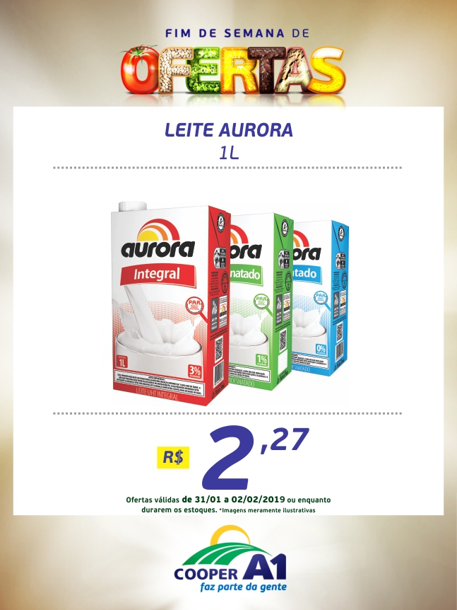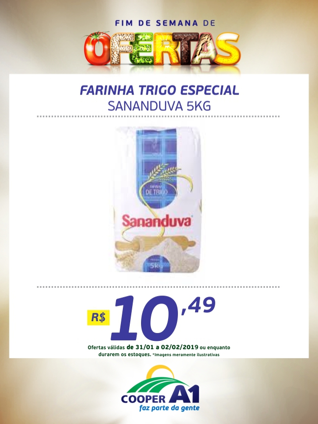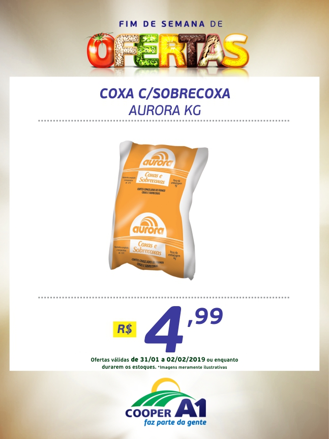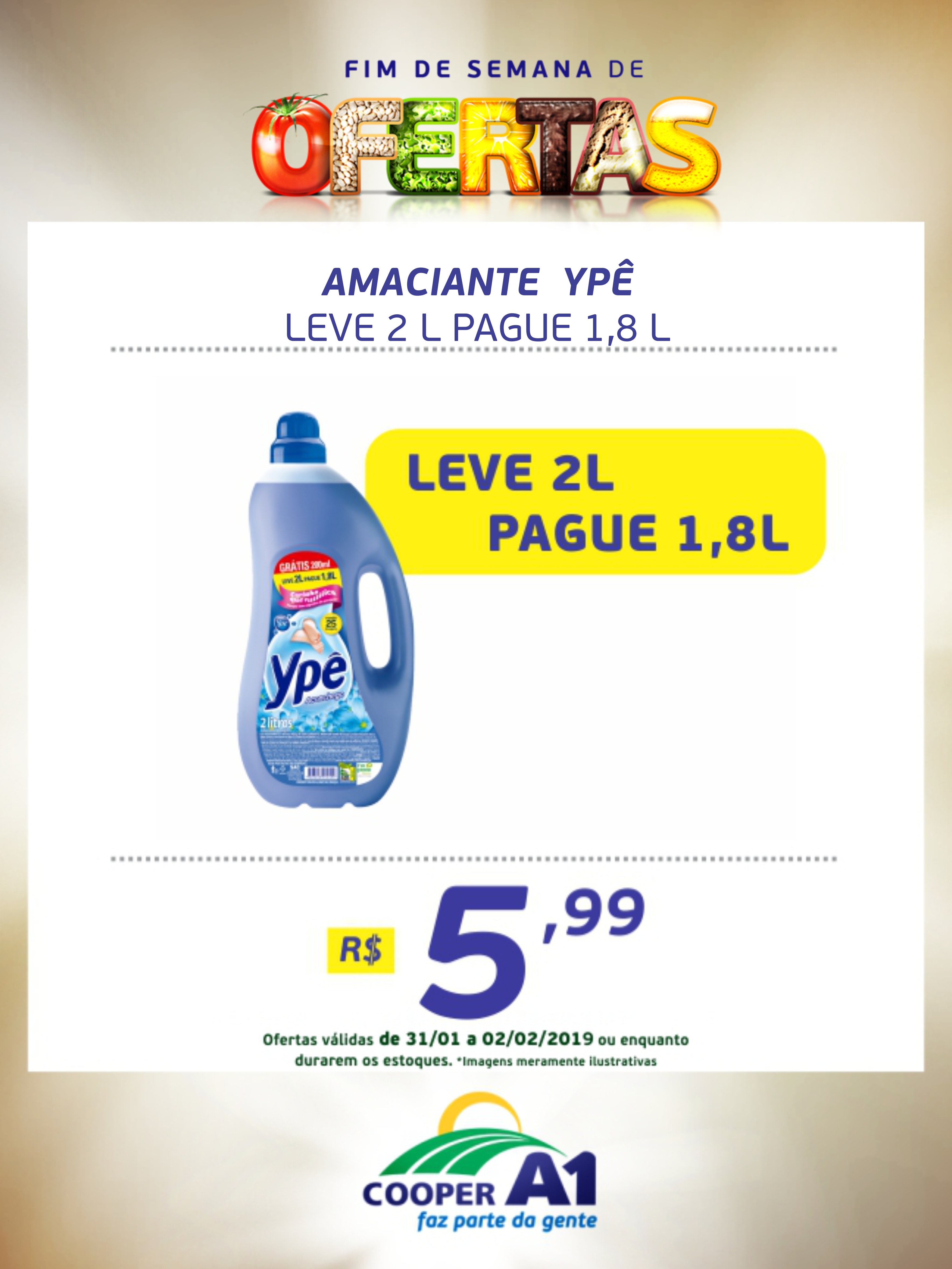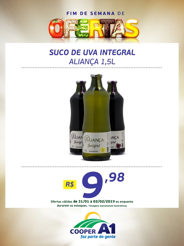 Confira nosso Fim de Semana de Ofertas especiais, para você começar fevereiro com muita economia e carrinho cheio. Ofertas válidas de 31/01 a 02/02/2019 ou enquanto durarem os estoques nas Lojas da Cooper A1.