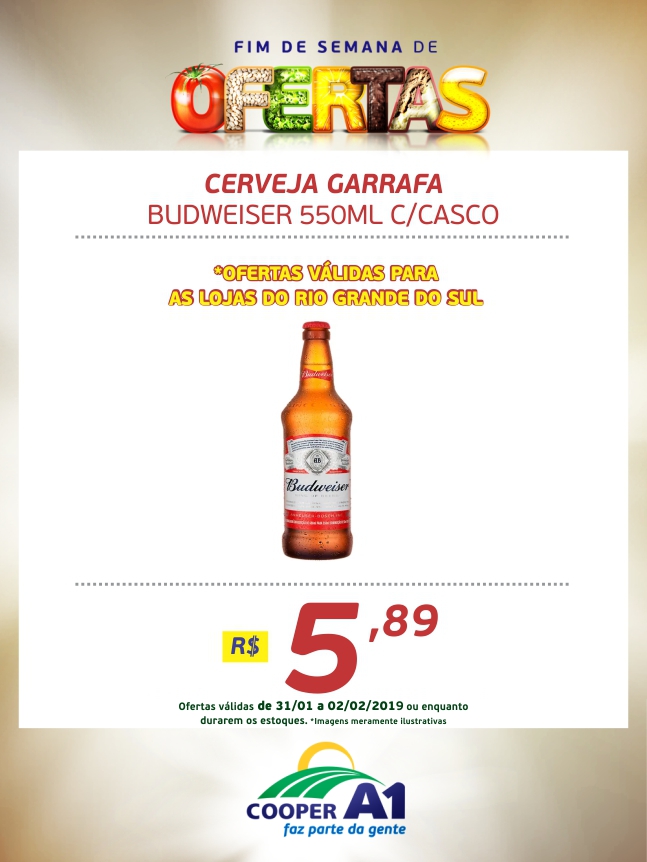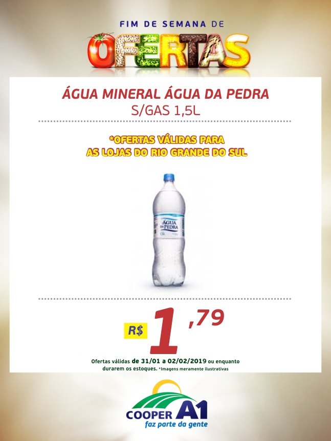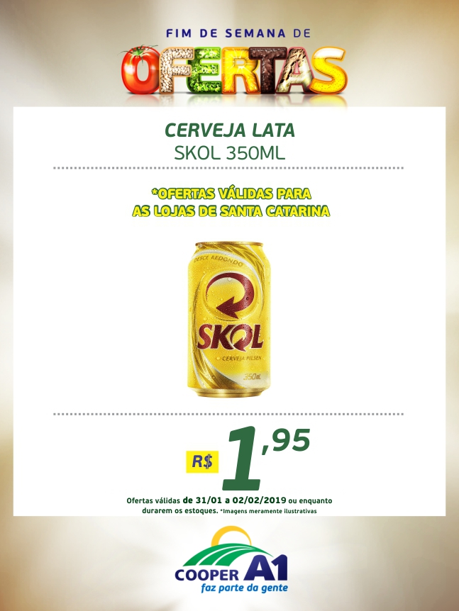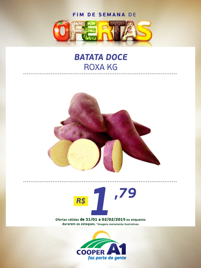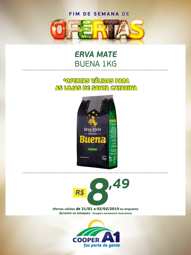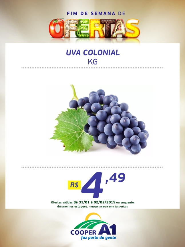 Confira nosso Fim de Semana de Ofertas especiais, para você começar fevereiro com muita economia e carrinho cheio. Ofertas válidas de 31/01 a 02/02/2019 ou enquanto durarem os estoques nas Lojas da Cooper A1.