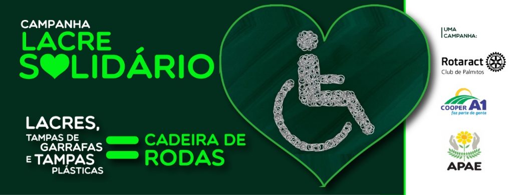 O grupo de voluntários da Cooper A1, e as unidades da cooperativa abraçaram a campanha do Lacre Solidário, realizada pelo Rotaract e Associação de Pais e Amigos dos Excepcionais (APAE) de Palmitos. Trata-se de uma arrecadação de lacres, tampas de garrafas e tampas plásticas, que ao serem acumuladas, são trocadas por cadeiras de rodas. A campanha é realizada em todo Brasil, e na cooperativa a ideia vem crescendo gradativamente. No período entre 10/09/2018 a 15/02/2019, a Cooper A1 arrecadou 572 quilos de lacres de ferro, 39 quilos de lacres de plástico e 19 quilos de lacres de alumínio. Todos foram separados e vendidos, o valor arrecadado será utilizado para auxiliar a APAE de Palmitos.Quer ajudar nesta causa?