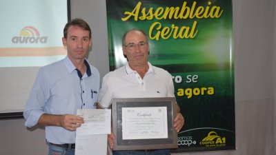 O PRSA vem de uma soma de programas como: Qualidade Total Rural e De Olho na Qualidade. Foram premiadas propriedades com atividades de avicultura, bovinocultura de leite e suinocultura. Para conquistar à certificação, os cooperados precisaram alcançar uma determinada pontuação e cumprir com às determinações da Cooperativa Aurora. Para o presidente da Cooper A1, engenheiro agrônomo Elio Casarin, a certificação é um atestado de um trabalho organizado e comprometido: “sempre falo que somente permanecerá na agricultura, o produtor que estiver qualificado e estruturado para isto. Ou seja, estar enquadrado nas exigências é um compromisso do cooperado”. De 2017 até agora, a Cooper A1 já certificou cerca de 50 empresas rurais. Conheça os cooperados da Cooperativa A1 que receberam o certificado referente ao resultado de 2019: Palmitos: Ari Luiz Borges Astir Bruckmann Edgar Weiss João Carlos Schenatto Jovino Antonio Belatto Lucimar Luiz Munzlinger Marcos Weiss Marli Cladis Schlemmer Otmar Schlemmer Caibi: Jandir Demartini Mariocir Secco Marisa Porsch Arndt Odair Jose Picoli Pedro Canal Riqueza: Alceu Roque Allieve Cleiton Veitz Dirceu Saugo Elton Gabiatti Eloir Gabiatti Rudinei Alba Valter Pesamosca Walmor Stefanello Pesamosca Mondaí: Olvanil Pedro Paludo Iporã do Oeste: Julio Marcon Vander Konzen Descanso: Leocadio Antonio Capeleto Tunápolis: Beno Inacio Klein Blasio Wis Daniel Bourscheid Vicente Baumgratz Itapiranga: Marciano Rohden Marciel Rohden Thomas Lengert São João do Oeste: Afonso Aloisio Wolfart
