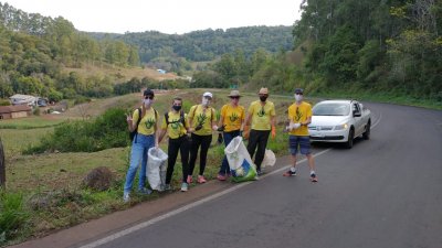 A mudança do mundo começa com boas ações e isso é o que não falta no Grupo de Voluntários Fazer o Bem faz Parte da Gente. No último sábado, dia 5 de junho, data em que se comemorou o Dia Mundial do Meio Ambiente, integrantes do grupo realizaram a limpeza das margens da Rodovia Municipal Helmuth Baiestorf, SCT - 497, acesso à Ilha Redonda, Palmitos, SC. A iniciativa contou com o apoio do Grupo Escoteiro Gonçalves Dias. A intenção é dar continuidade a ação e, já no próximo dia 12, os voluntários se mobilizarão novamente para limpar mais um trecho da rodovia.