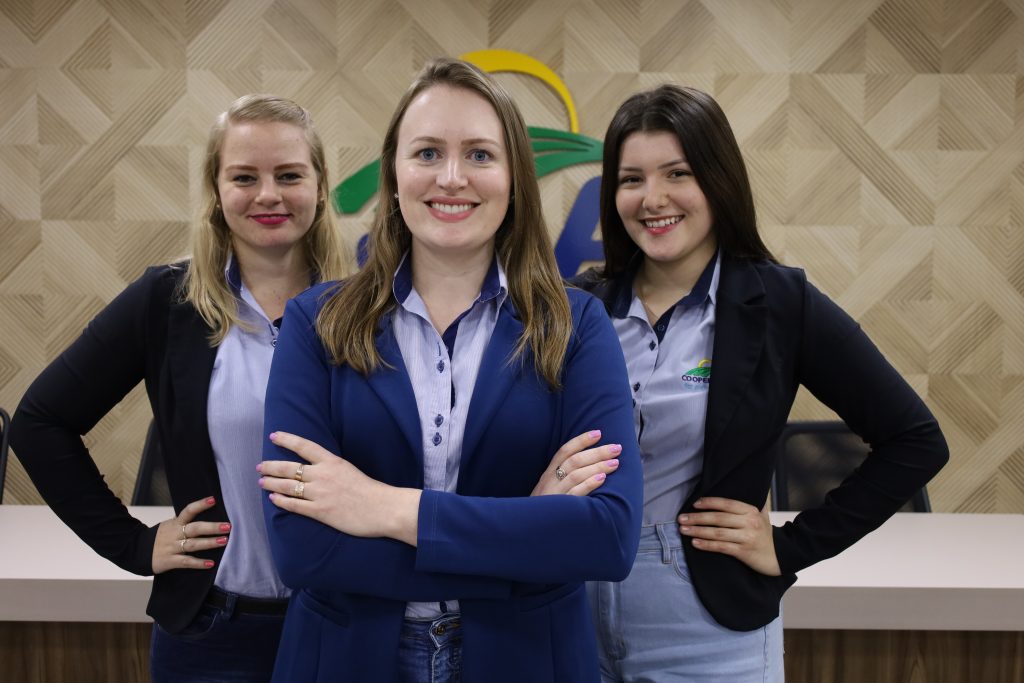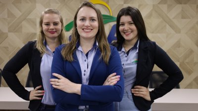 Coordenadora do Setor Pessoal, Cíntia Sommer, e as colaboradoras, Jéssica Patrícia Sell e Danieli Fernanda Lugarezi