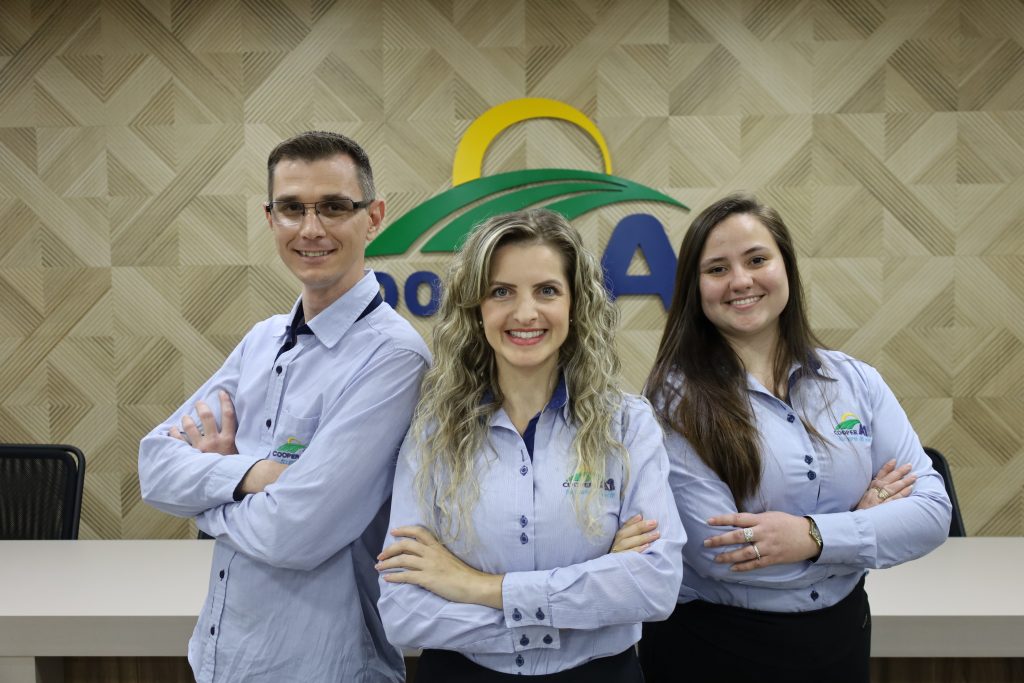 Coordenadora do setor de Gestão de Pessoas, Juliana Cavaleri, e os colaboradores, Gabriela Natasha Pedó e Éder Juliano Jahn