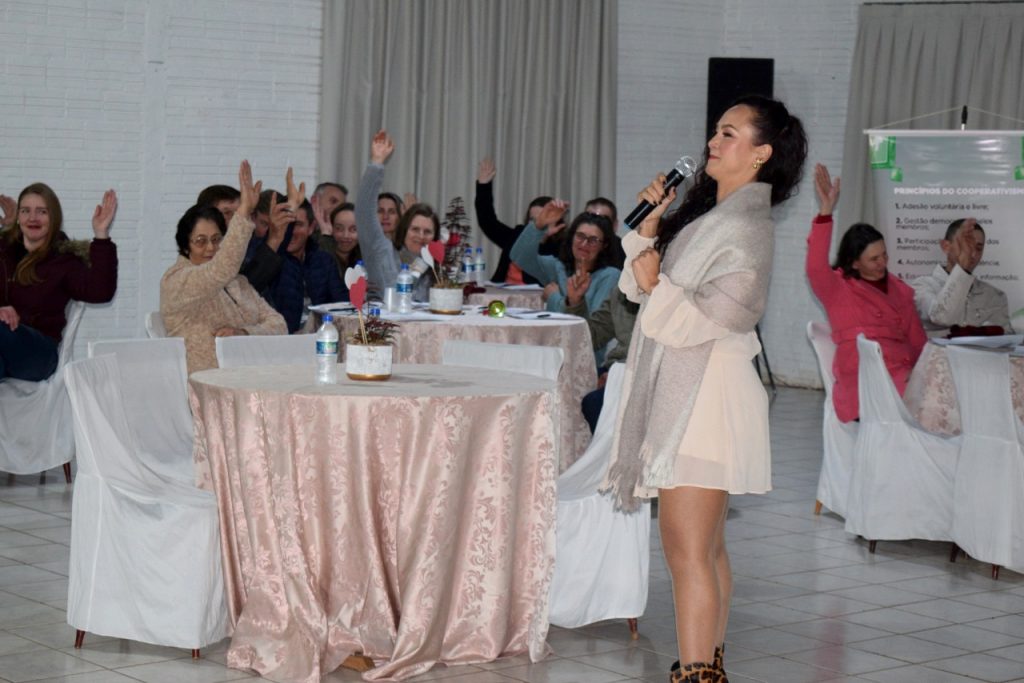 “Com certeza saímos diferentes do que entramos, muito mais fortalecidos e mais seguros enquanto casal e pessoas”, afirmou em depoimento o casal Eliane e Roberto Rossa. Eles participaram da primeira edição do programa Empoderando Casais, uma iniciativa do setor social da Cooper A1. O encerramento do programa foi no último dia 15, em Iporã do Oeste, com a presença dos 20 casais que fizeram parte da ação. O evento, também teve a presença do vice-presidente Lauri Inácio Slomski e contou com a palestra ‘All You Need Is Love’ ministrada por Cristiana da Luz. O vice-presidente, Lauri Inácio Slomski, diretor responsável pelos programas e projetos sociais da Cooper A1, ressaltou sobre o compromisso da cooperativa em levar educação cooperativista e contribuir com mudanças positivas na vida das pessoas. “Este também é um trabalho da Cooper A1, levar educação e formação para os cooperados, auxiliando na harmonia e boa convivência das famílias, que são a base da Cooper A1”. A primeira turma do projeto Empoderando Casais, contou com casais de todas as faixas etárias. O objetivo do curso, que iniciou em abril deste ano, teve duração de aproximadamente 28 horas divididas em sete módulos. O nasceu após avaliações da equipe social da Cooper A1, que identificou a necessidade de direcionar a educação cooperativista ao casal. Segundo as responsáveis, no decorrer dos 20 anos de trabalho social que a Cooperativa A1 oferece às mulheres e jovens, observou-se a necessidade de fortalecer e apoiar os casais cooperados. Segundo a coordenadora de programas sociais, Luisa Jaehn Kollmann, a iniciativa visa proporcionar harmonia e equilíbrio nas famílias cooperadas, para um melhor convívio e qualidade de vida nas empresas rurais. “Este grupo de 20 casais, é muito importante e ficará marcado para a Cooper A1. Isto por que vocês foram os pioneiros, e aceitaram embarcar nesta jornada com a cooperativa. Foram momentos importantes, de muito aprendizado, troca de ideias, experiências, novas amizades, momentos de muita alegria e, principalmente, fortalecimento do cooperativismo. Agradecemos também a unidade de Iporã do Oeste, em nome do gerente Vilmar Reis, por iniciar esse processo conosco”. Tudo o que você precisa é amor Para o evento de encerramento, o setor social programou uma ação especial. Cristiana da Luz, que conduziu a palestra “All you need is love” – ‘Tudo o que você precisa é amor’, em tradução livre, tem com foco nas áreas de empreendedorismo, comunicação, relações humanas e autoconhecimento. Ela fez uma abordagem emocional e dinâmicas com uma perspectiva de promoção da saúde conjugal. Além disso, abordou ferramentas para produzir mudanças importantes na vida conjugal, especialmente no que diz respeito à melhora na resolução dos conflitos cotidianos.