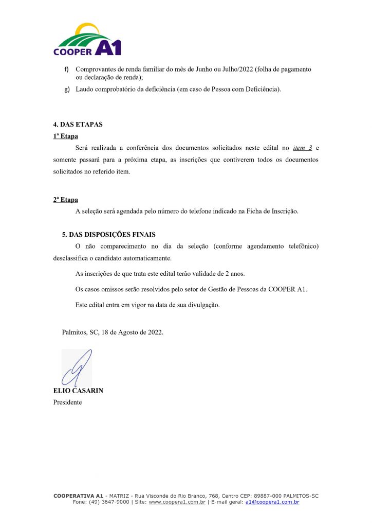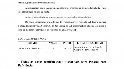 EDITAL: Seleção de aprendiz para Erval Seco/RS