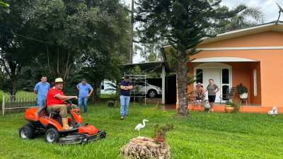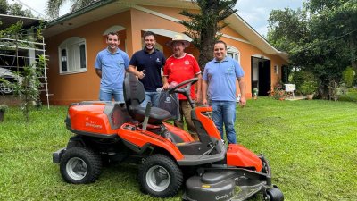 A entrega foi realizada pelo Coordenador de loja agropecuária de Caibi, Josimar Pasqualon, pelo técnico de balcão, Tailon Bedin e pelo promotor técnico da Husqvarna, Heffaistton Colla.