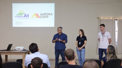 Nesta segunda-feira (24) foi realizado na associação dos funcionários da Cooper A1 em Palmitos, o lançamento do programa Leite Mais Saudável para os cooperados de SC. O projeto é em parceria com a Aurora Coop, que tem por objetivo melhorar diferentes indicadores da propriedade. Ao todo, 27 produtores de leite estiveram presentes.